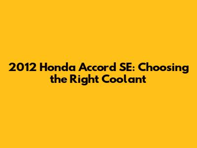 Identifying the Correct Coolant Type for Your 2012 Honda Accord SE
