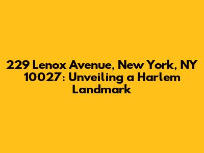 Hey guys! Ever find yourself wandering through Harlem, soaking in the vibrant culture and rich history? Well, you might just stumble upon a pretty significant spot: 229 Lenox Avenue. This address isn't just a building; it's a slice of New York history, brimming with stories and significance. Let's dive into what makes 229 Lenox Avenue, New York, NY 10027 so special.