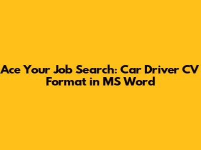 Ace Your Job Search: Car Driver CV Format In MS Word