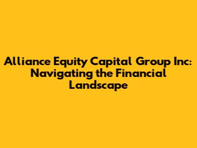 Alliance Equity Capital Group Inc: Your Financial Growth Partner