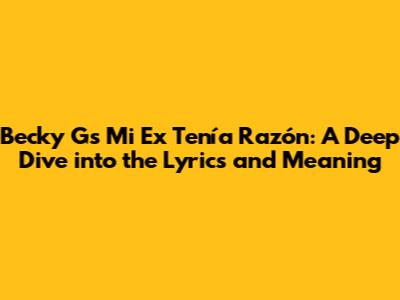 Hey music lovers! Let's get into the nitty-gritty of Becky G's smash hit, "Mi Ex Ten铆a Raz贸n." This song isn't just a catchy tune; it's a whole vibe, a story, and a feeling that resonates with so many of us. We'll break down the lyrics, explore the meaning, and uncover why this song has become an anthem for anyone who's ever navigated the rollercoaster of relationships. So, grab your headphones, get ready to sing along, and let's dive in! "Mi Ex Ten铆a Raz贸n," which translates to "My Ex Was Right," isn't just a clever title; it sets the stage for a narrative of self-discovery, growth, and the bittersweet realization that sometimes, our past experiences hold valuable lessons. Becky G masterfully crafts a relatable tale of reflection and acceptance, making this song an instant classic. This song is a great representation of what it means to grow and evolve from past experiences and relationships, and how sometimes, our exes might actually have a point! We'll explore the layers of meaning embedded within the lyrics, analyzing the emotional journey Becky G takes us on. This song is an excellent example of how artists can transform personal experiences into universal messages, and we'll see exactly how Becky G does it so well. This is a story about recognizing the truths we often overlook while we're in the thick of things. The song's popularity isn't just about a catchy beat; it's about the emotional connection it fosters with listeners. The song is a testament to the power of self-awareness and moving forward with a newfound perspective.