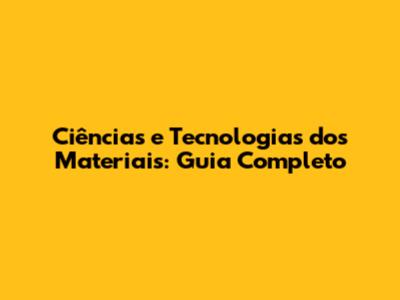 Ciências E Tecnologias Dos Materiais: Guia Completo