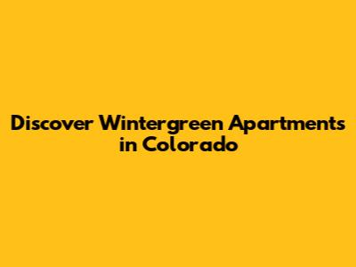 Discover Wintergreen Apartments In Colorado