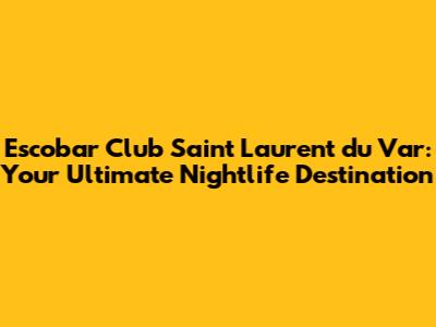 Hey party people! If you're on the hunt for an unforgettable night out in Saint Laurent du Var, look no further than Escobar Club. This isn't just another club; it's a whole vibe. From its electrifying atmosphere to its top-notch music, Escobar Club promises an experience that'll have you talking about it for weeks. Let's dive into what makes this spot the go-to destination for locals and tourists alike.