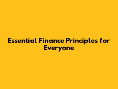 Essential Finance Principles For Everyone
