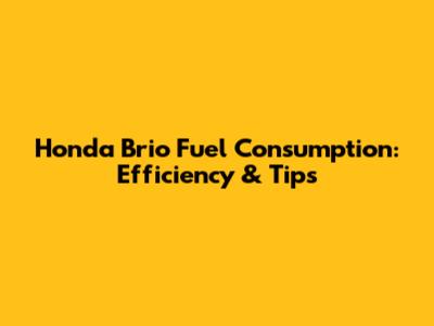Honda Brio Fuel Consumption: Efficiency & Tips