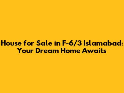 House For Sale In F-6/3 Islamabad: Your Dream Home Awaits