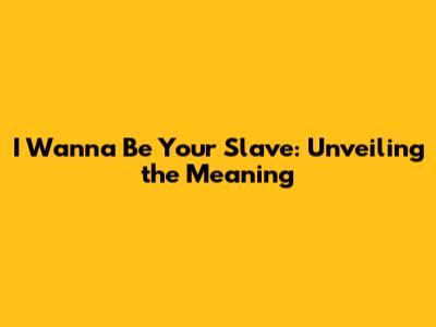 I Wanna Be Your Slave: Unveiling The Meaning
