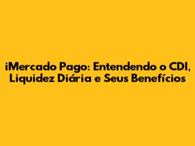 IMercado Pago: CDI, Liquidez Diária E Seus Benefícios