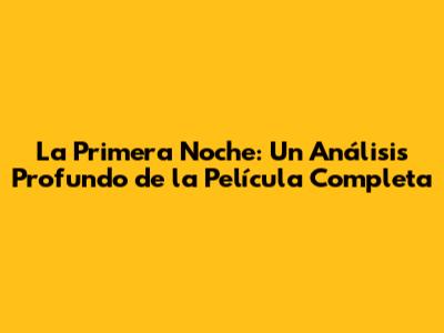 La Primera Noche: Explora La Película Completa Y Su Impacto
