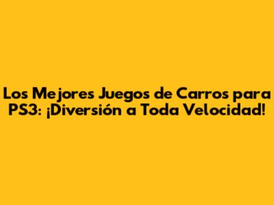 Los Mejores Juegos De Carros Para PS3: ¡Diversión A Toda Velocidad!