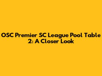 OSC Premier SC League Pool Table 2: A Closer Look