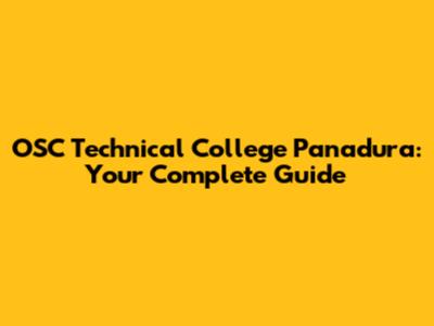 OSC Technical College Panadura: Your Complete Guide