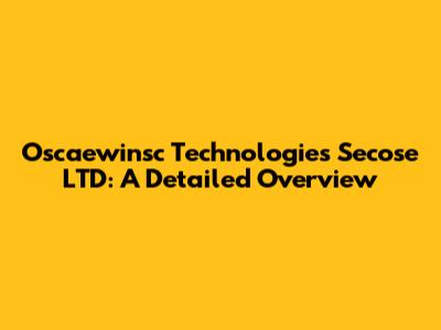 Oscaewinsc Technologies Secose LTD: A Detailed Overview