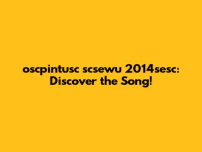Therefore, "oscpintusc scsewu 2014sesc Lagu" likely refers to a song connected to a person named oscpintusc, who was affiliated with scsewu during an event or project (sesc) in 2014. The song might have been performed, created, or studied in this context. To find the actual song, we would need to dig deeper into archives, online platforms, and databases related to "scsewu" and events from 2014.