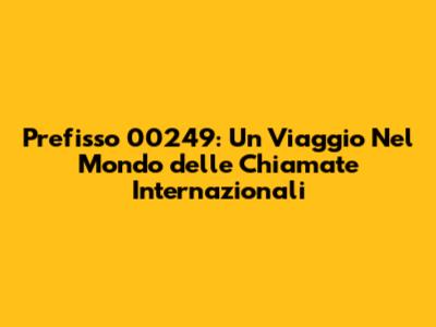 Svelando il Mistero: La Nazione del Prefisso 00249