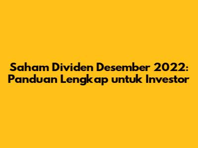 Saham Dividen Desember 2022: Peluang Dan Strategi Investasi
