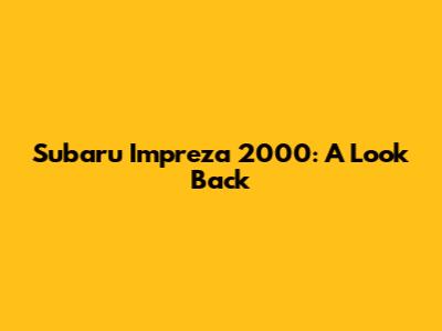 Subaru Impreza 2000: A Look Back