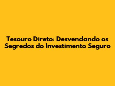 Tesouro Direto: Seu Guia Completo Para Investir Com Segurança