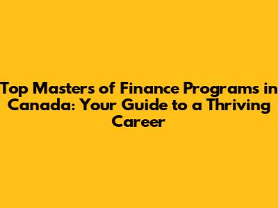 Top Masters Of Finance Programs In Canada