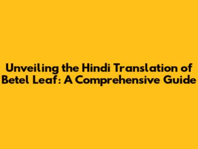 Unveiling The Hindi Translation Of Betel Leaf: A Comprehensive Guide