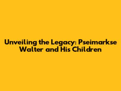 Unveiling The Legacy: Pseimarkse Walter And His Children