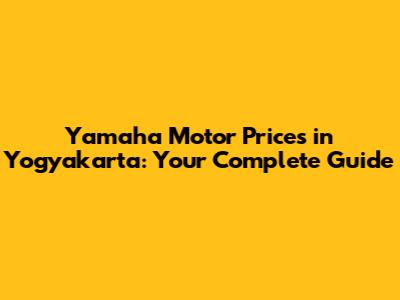 Yamaha Motor Prices In Yogyakarta: Your Complete Guide